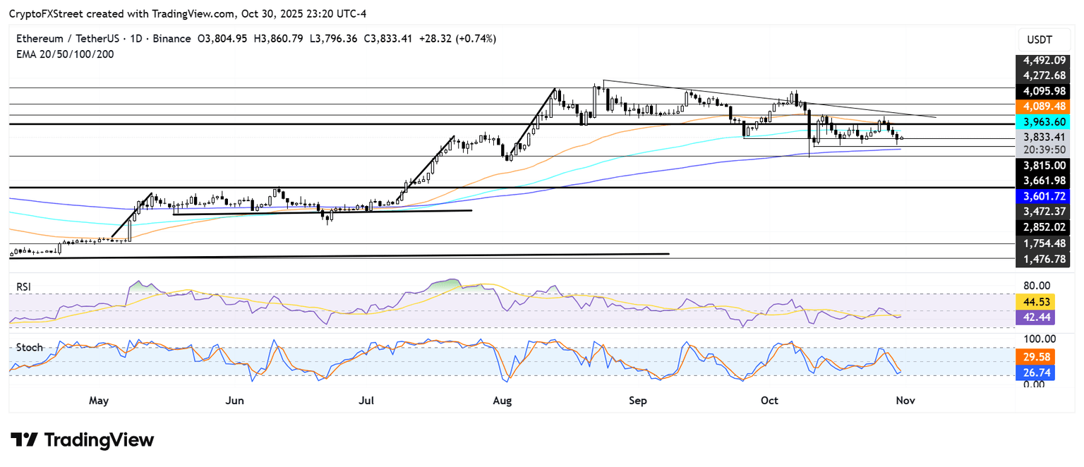 - ETH podría encontrar soporte cerca de 3.600$ si pierde el nivel de 3.815$.