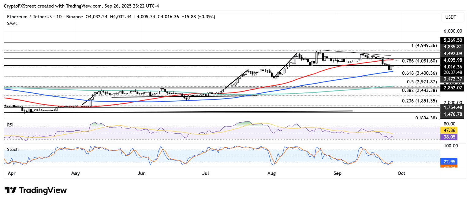 - ETH está intentando recuperar el nivel de 4.000$ después de rebotar en la SMA de 100 días.