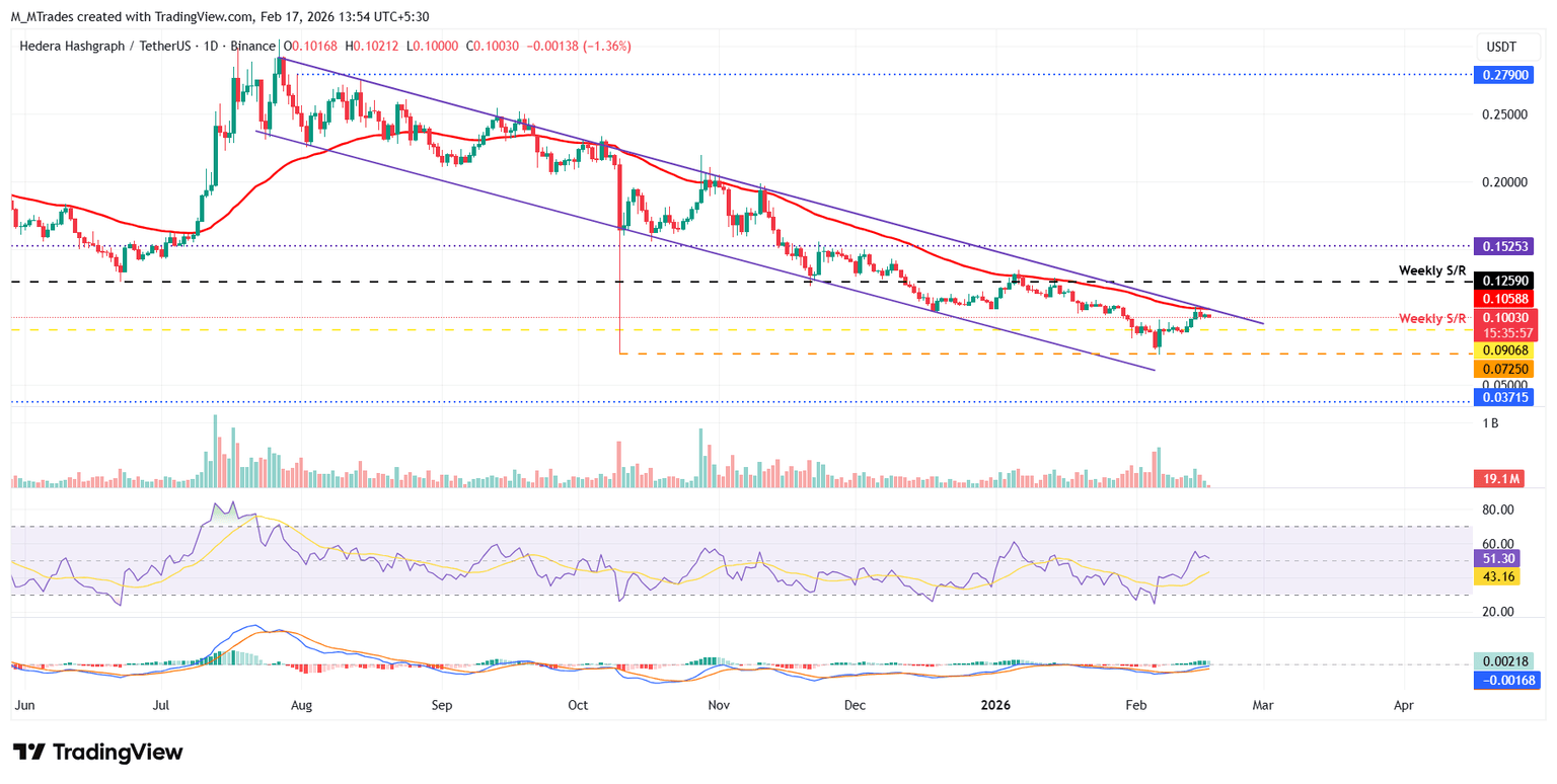 Hedera (HBAR) está cotizando por debajo de 0.101$ en el momento de escribir el martes, tras no poder romper una zona de resistencia clave durante el fin de semana. Los datos de derivados muestran un potencial de recuperación limitado en HBAR, ya que el Interés Abierto (OI) está cayendo constantemente junto a tasas de financiación negativas, mientras que el panorama técnico es desfavorable.