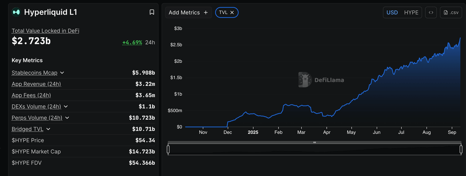 - El TVL de Hyperliquid DeFi se dispara a un récord de 2.72 mil millones de dólares en medio de una confianza constante de los inversores.