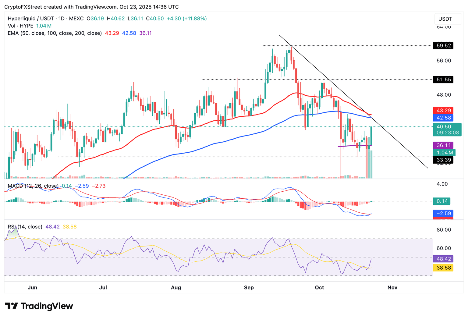 - Hyperliquid extiende su recuperación por encima del nivel clave de 40,00$ el jueves.