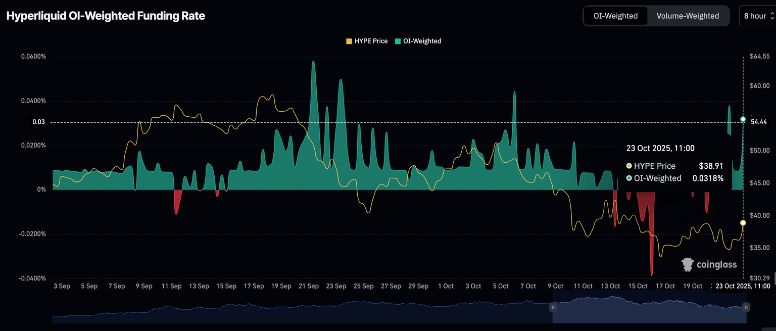 Métrica de Tasa de Financiamiento Ponderada por OI de Hyperliquid | Fuente: CoinGlass