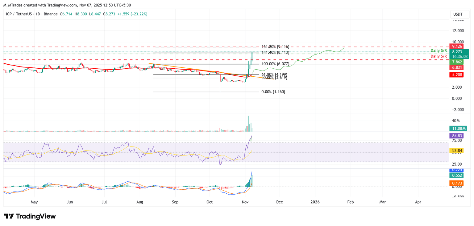 Si ICP continúa su tendencia alcista, podría extender el rally hacia el siguiente nivel de resistencia diario en 9.12 $.