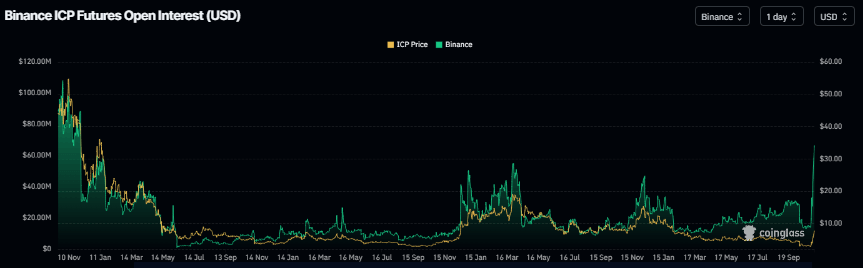 Los datos de CoinGlass muestran que el interés abierto de los futuros de Internet Computer en los intercambios alcanzó un nuevo máximo histórico de 237,92 millones de dólares el viernes. Además, durante el mismo período, el interés abierto en el intercambio de Binance ha alcanzado 66,5 millones de dólares, niveles no vistos desde marzo de 2022. Un interés abierto creciente representa nuevo o adicional dinero ingresando al mercado y nuevas compras, lo que podría alimentar el actual rally del precio de ICP.