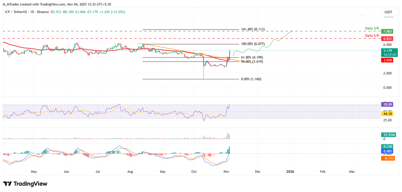 El precio de Internet Computer (ICP) extiende su recuperación en un 30%, cotizando por encima de los 5$ en el momento de escribir el martes, después de una fuerte recuperación la semana anterior. El aumento de la actividad en cadena, la creciente adopción de la red y la mejora del sentimiento del mercado están alimentando la tendencia alcista, con los alcistas ahora fijando su atención en el nivel de resistencia clave de 6$.