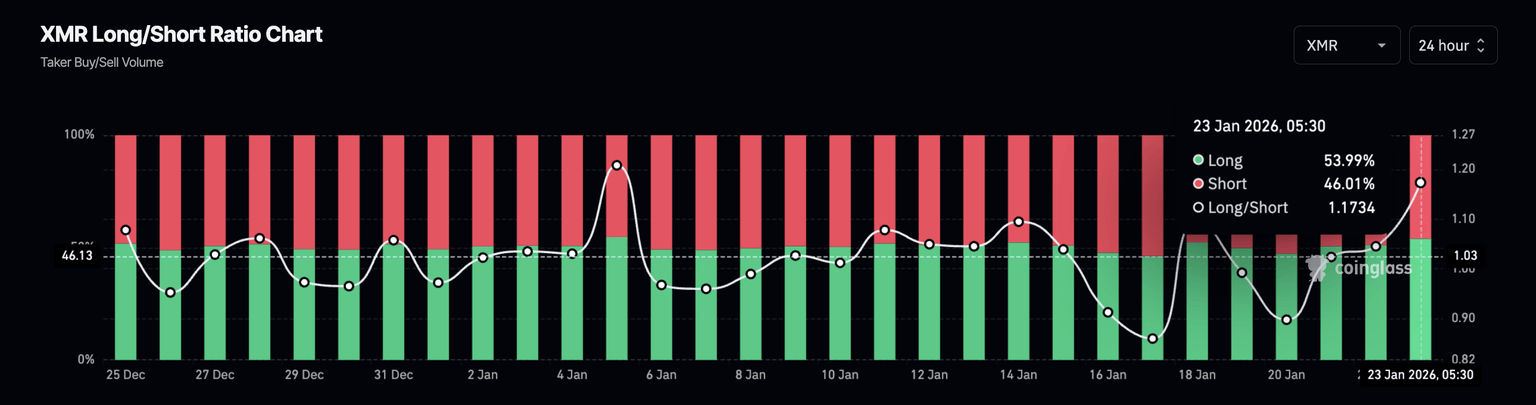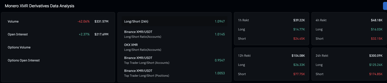 - Un aumento en el interés abierto de XMR y una nueva acumulación de posiciones largas reflejan un sesgo alcista entre los operadores.