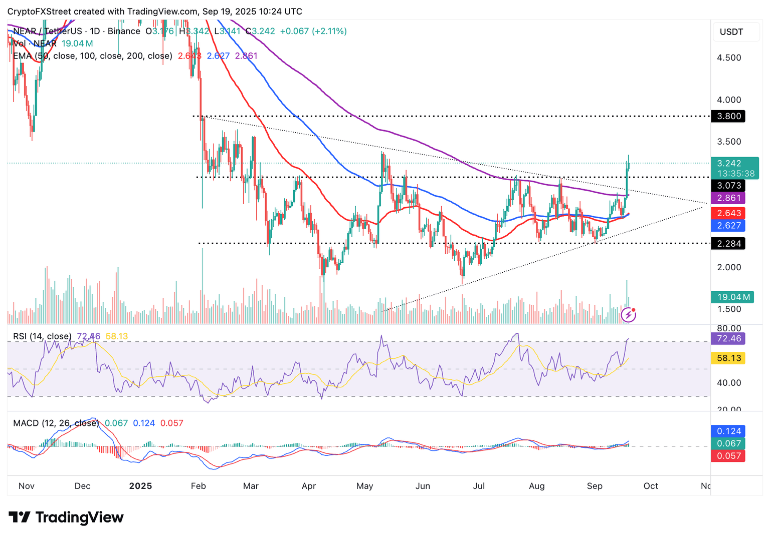 - Near Protocol rompe por encima de la resistencia de 3.00$ mientras los alcistas apuntan a extender la ruptura a 3.80$.