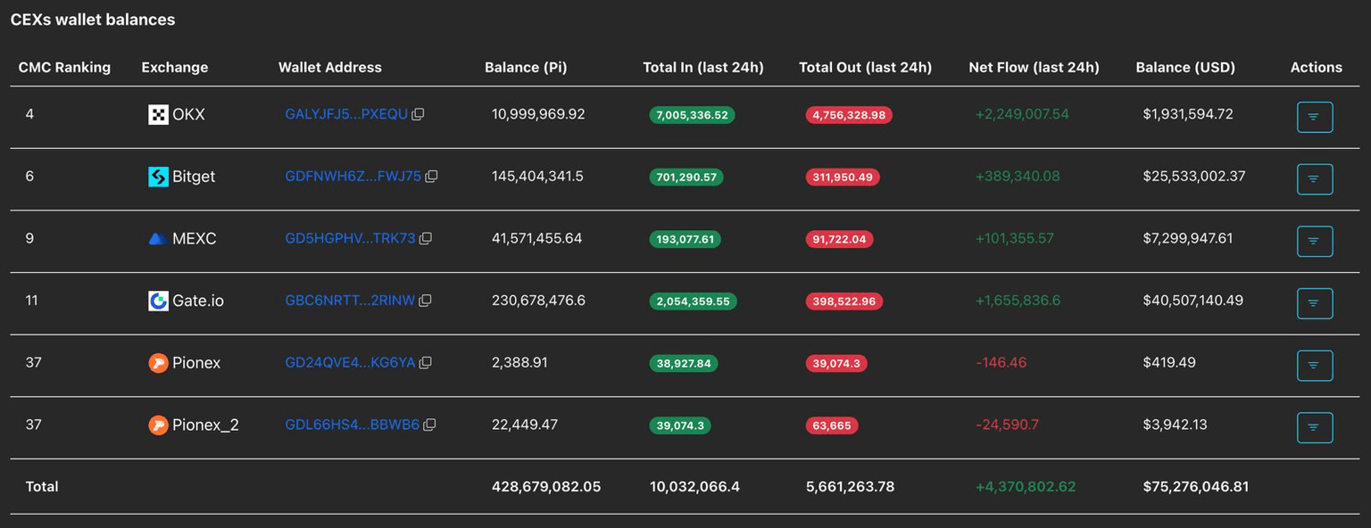 - Los datos de PiScan muestran grandes depósitos en CEXs que totalizan más de 4 millones de tokens PI en las últimas 24 horas, reflejando un éxodo de inversores que toman beneficios.