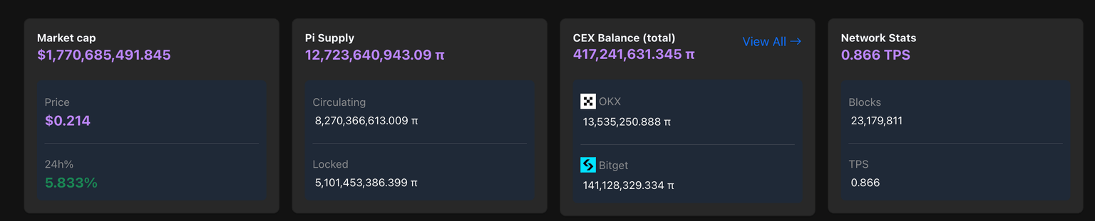 De los 8.27 millones de suministro circulante de Pi Network, la mayoría está fuera de los intercambios, según datos de PiScan, que muestran la reserva total de los Intercambios Centralizados (CEXs) en 417.20 millones de PI. Esto sugiere que la mayor parte de la presión de venta proviene de transacciones fuera de los intercambios.