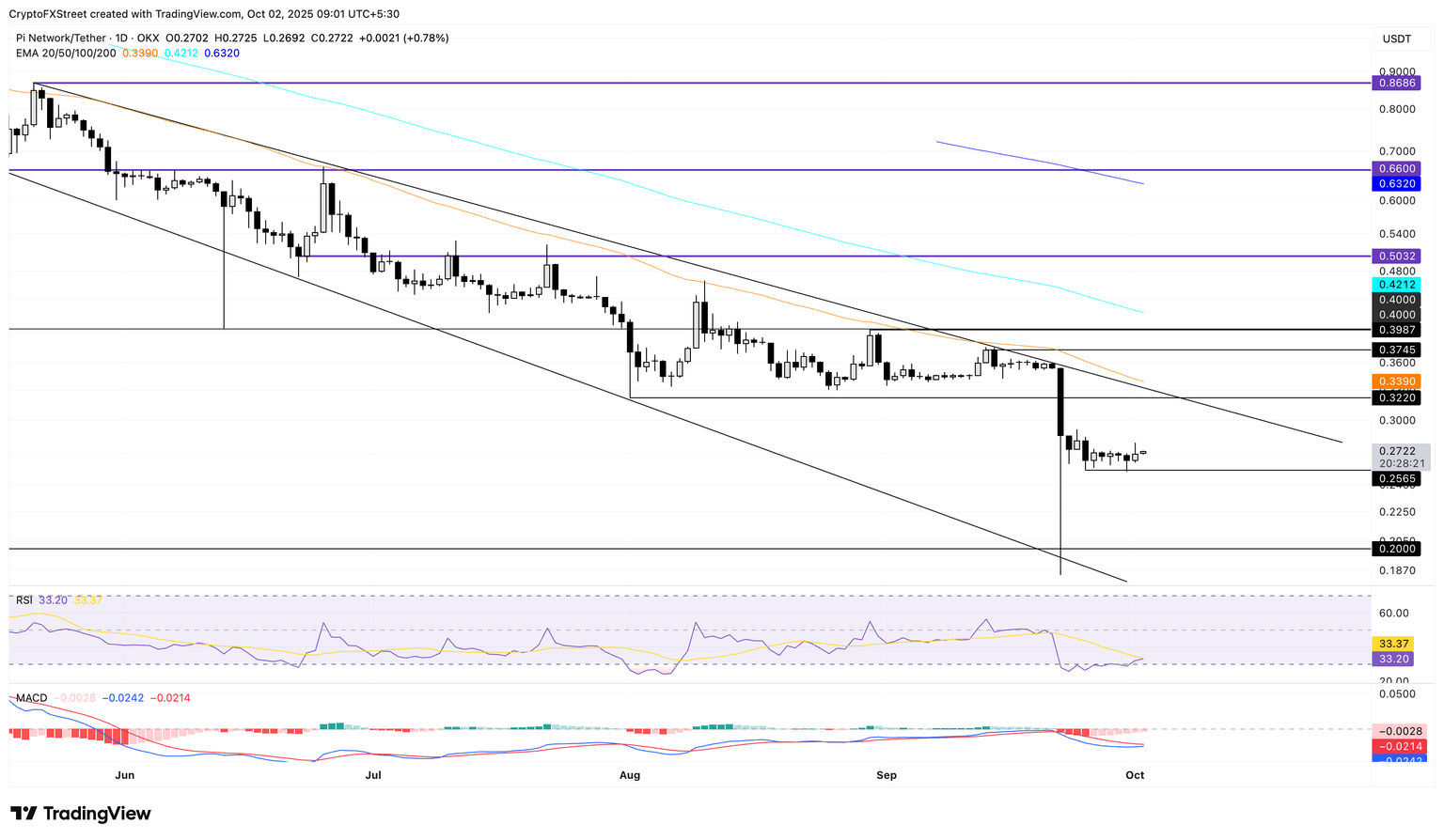 Aún así, los indicadores técnicos en el gráfico diario sugieren una disminución gradual en la presión de venta, lo que podría allanar el camino para el próximo movimiento de reversión en el token PI. El Índice de Fuerza Relativa (RSI) marca 33, resurgiendo de la zona de sobreventa. Además, el Convergencia/Divergencia de Medias Móviles (MACD) se está acercando a su línea de señal, señalando un posible cruce, lo que indicaría un cambio alcista en el impulso de la tendencia de PI.