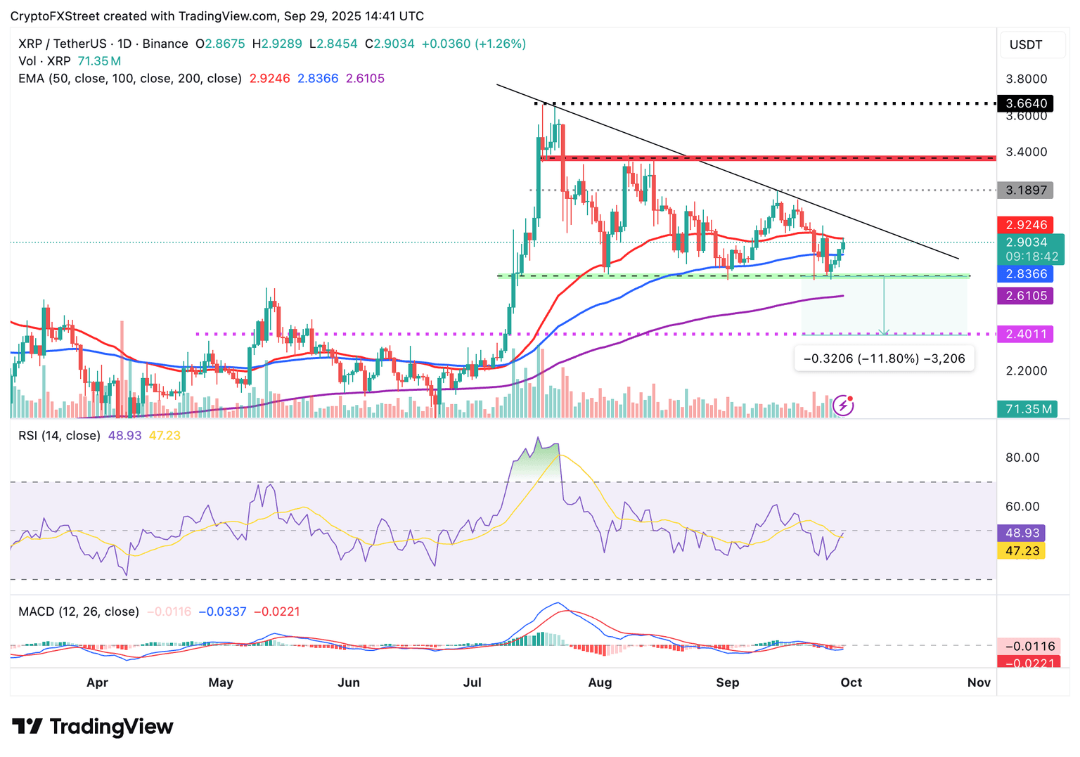 Perspectiva técnica: Los alcistas de XRP apuntan a una ruptura en 3.00$