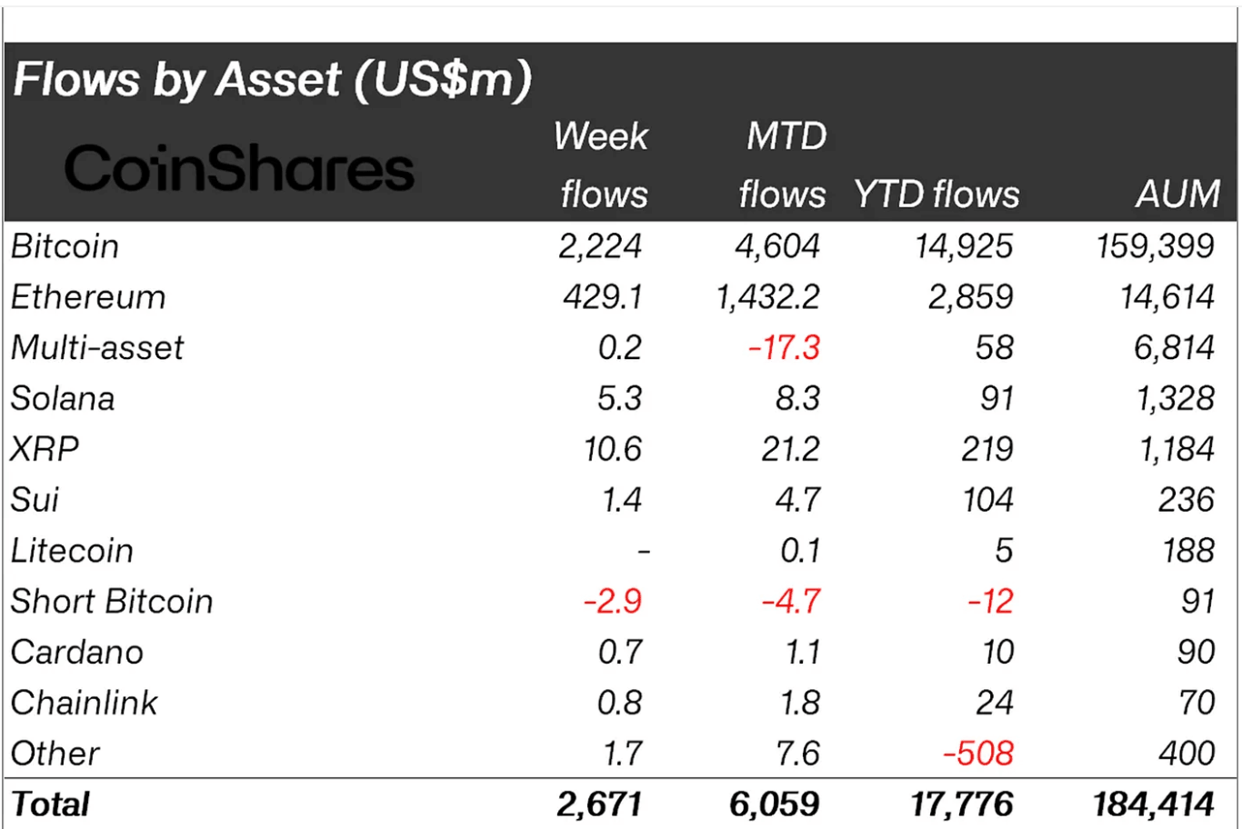 Informe semanal de flujos de fondos de activos digitales | Fuente: CoinShares
