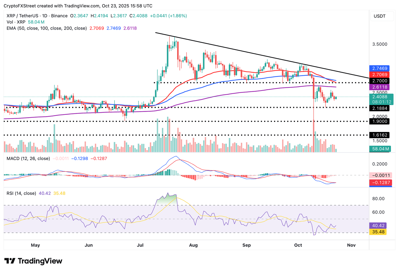 Los hitos clave incluyen una ruptura sostenida por encima del nivel redondo de 2.50$, la Media Móvil Exponencial (EMA) de 200 días en 2.61$ y la EMA de 50 días en 2.70$, todos los cuales podrían señalar la toma de beneficios si XRP muestra debilidad durante la tendencia alcista.