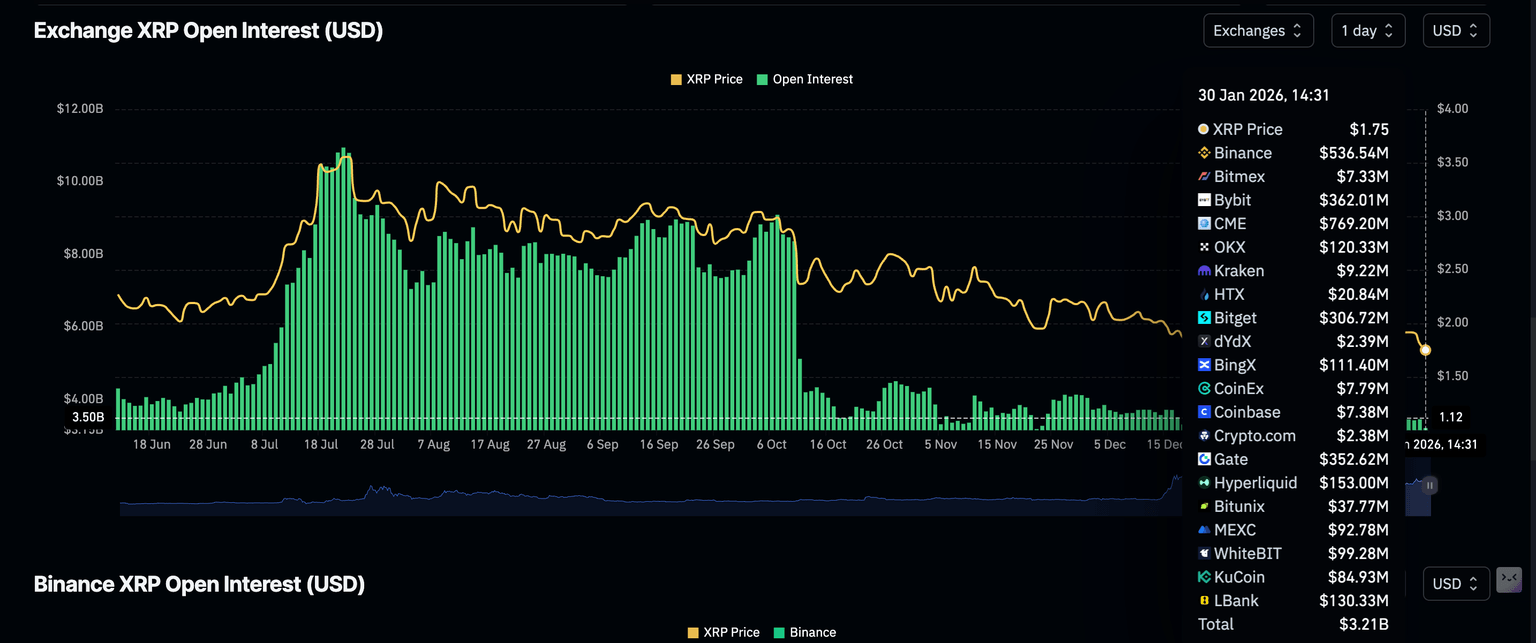 El interés minorista en XRP está evidentemente disminuyendo, ya que el Interés Abierto (OI) de futuros cayó a 3.21 mil millones de dólares el viernes, desde 3.46 mil millones de dólares el día anterior. El OI rastrea el valor nocional de los contratos de futuros pendientes; por lo tanto, la baja actividad minorista indica que los inversores carecen de confianza en la capacidad del token para mantener una tendencia alcista. También significa que los inversores están cerrando posiciones en lugar de abrir nuevas, privando a XRP del impulso necesario para recuperarse.