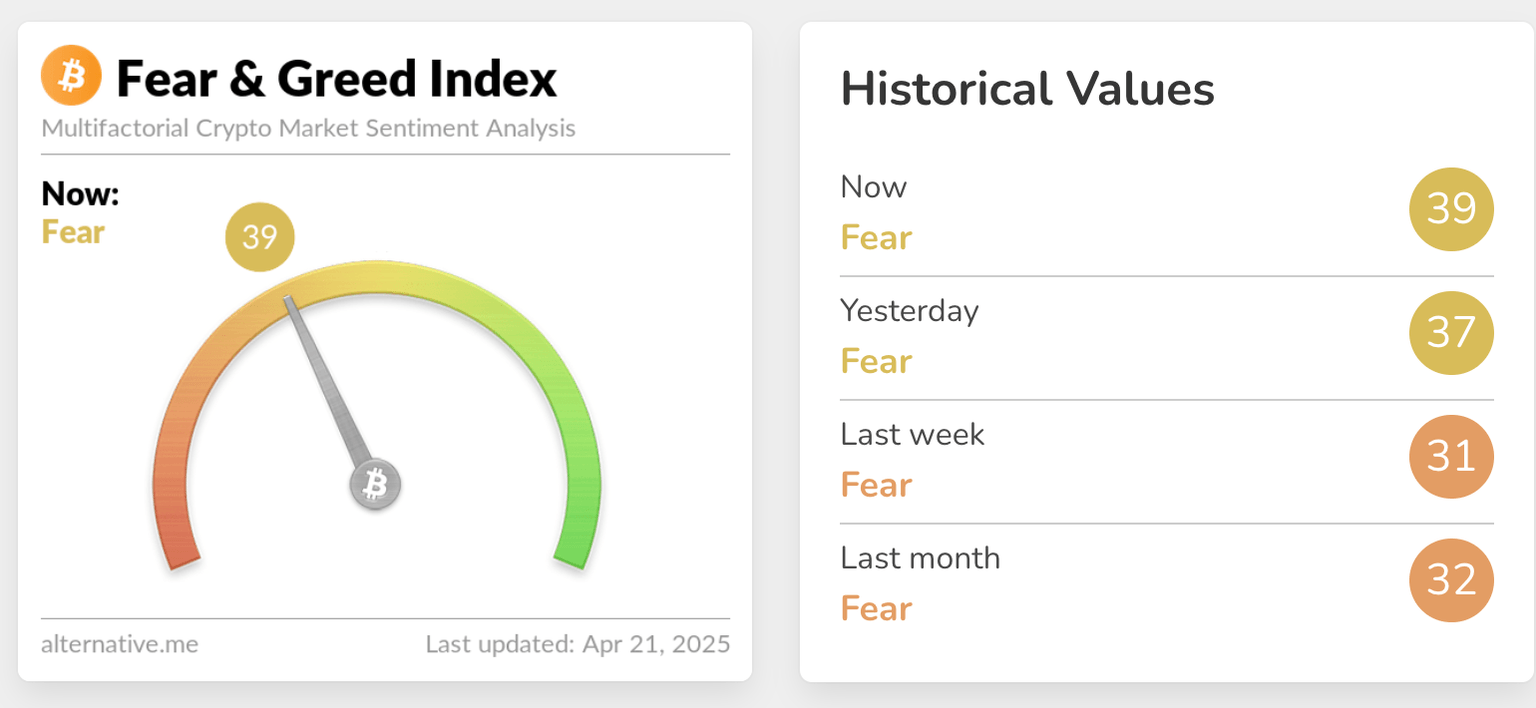 Según Alternative.me, el índice de miedo y codicia está recuperando impulso en 39, lo que indica un salto significativo desde las condiciones de miedo extremo observadas antes de los aranceles recíprocos del presidente de Estados Unidos (EE.UU.), Donald Trump, el 9 de abril. Además de la pausa de los aranceles de 90 días, varios factores fomentan un sentimiento de riesgo, como las condiciones de sobreventa y un entorno regulatorio mejorado en EE.UU.