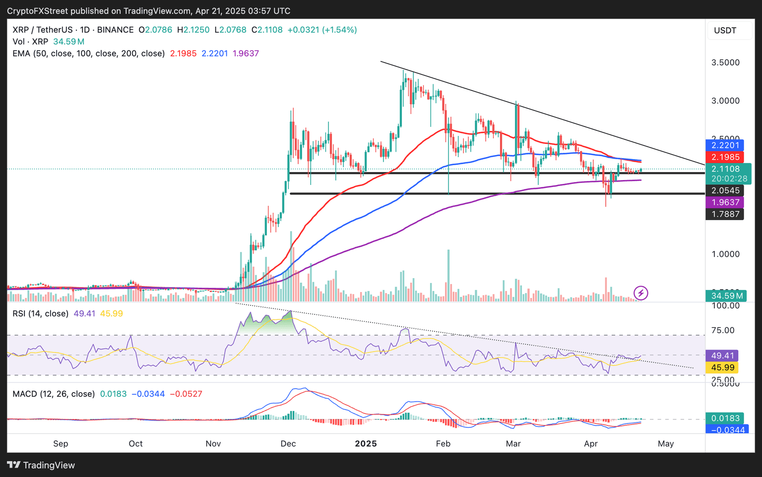 Además, los traders conservadores pueden esperar hasta que el indicador MACD cruce por encima de la línea central antes de invertir completamente en XRP. Sin embargo, vale la pena señalar que el Índice de Fuerza Relativa (RSI) ha roto recientemente la resistencia de la línea de tendencia descendente, insinuando un cambio de guardia a favor de los alcistas.