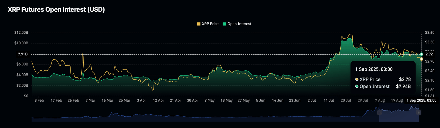 El interés minorista en el token de remesas internacionales se mantiene relativamente elevado cerca de la marca de 8 mil millones de dólares. Los comerciantes estarán observando el Interés Abierto (OI), que representa el valor nocional de los contratos de futuros pendientes, para evaluar el sentimiento y el optimismo del mercado.