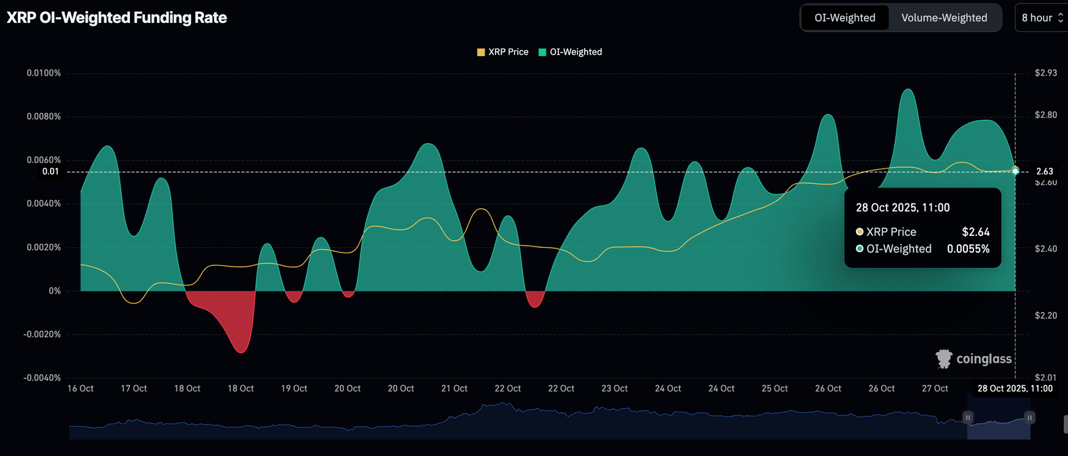 Métrica de tasa de financiamiento ponderada por interés abierto de XRP | Fuente: CoinGlass