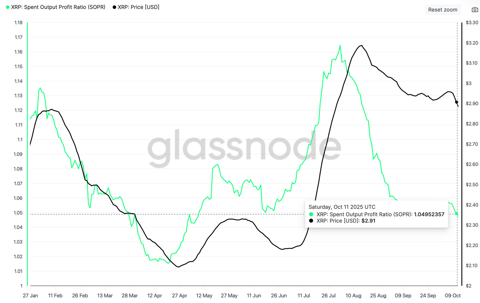 XRP extiende su declive mientras el SOPR se reinicia