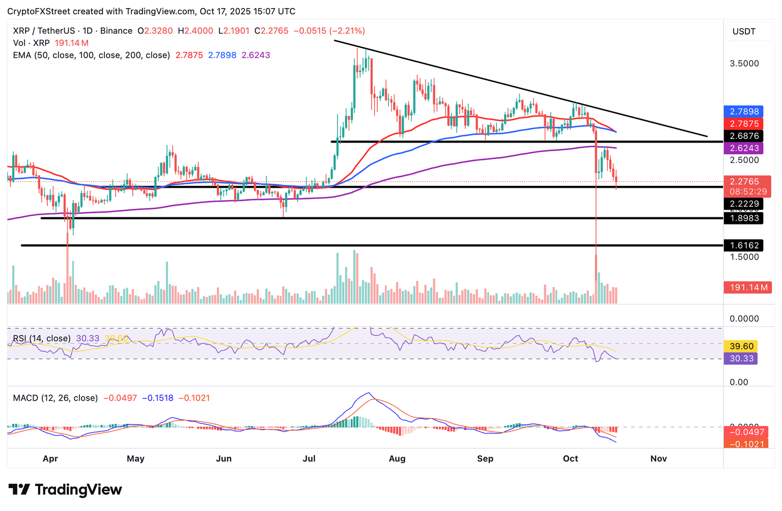 Perspectiva técnica: los bajistas de XRP aprietan su agarre
