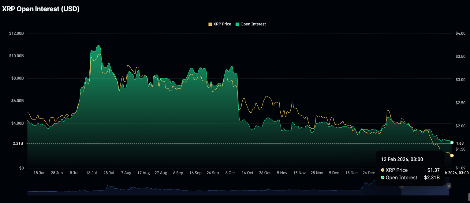 - El mercado minorista de XRP extiende su debilidad mientras el Interés Abierto de futuros cae a 2.31 mil millones de dólares.