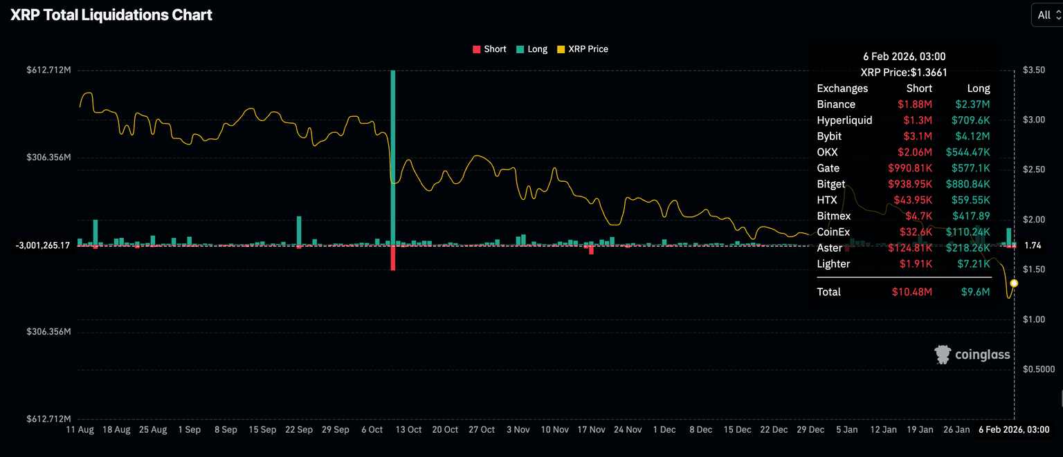 La recuperación continua de XRP carece del apoyo del mercado minorista, mientras que el interés institucional sigue siendo bajo. Por lo tanto, los operadores deben monitorear de cerca las tendencias del OI para mantener una postura optimista en medio de la volatilidad. Mientras tanto, la presión de las posiciones liquidadas ha disminuido, dado la recuperación de precios en curso. Según CoinGlass, aproximadamente 10 millones de dólares en posiciones largas y 10.5 millones de dólares en posiciones cortas han sido liquidadas el viernes, en comparación con 59 millones de dólares en largas y 11 millones de dólares en cortas el jueves. A medida que el precio de XRP sube, la presión sobre las posiciones largas está lista para aliviarse, lo que podría apoyar la recuperación.