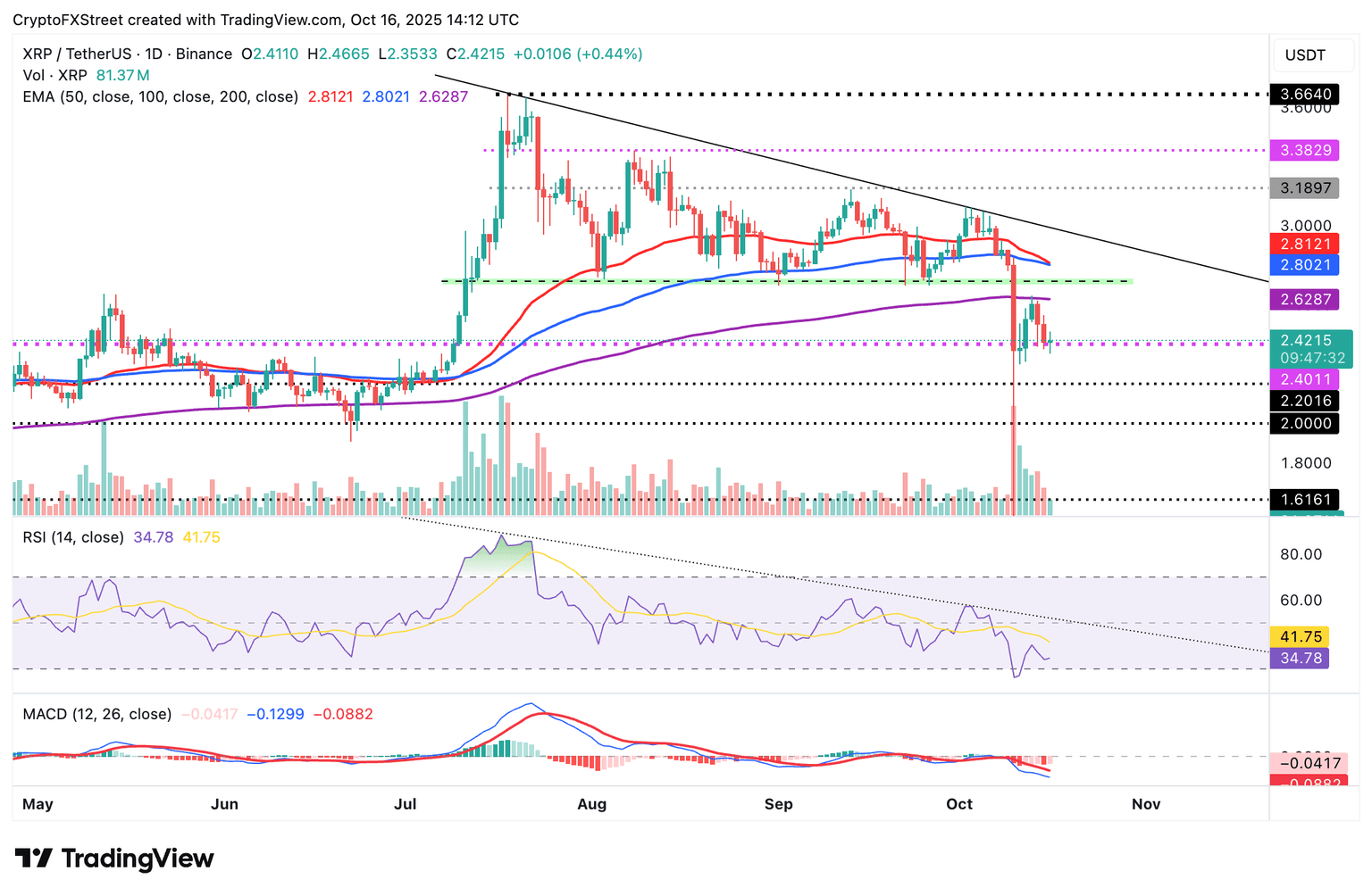 - XRP rebota por encima del soporte clave de 2.40$ en conjunto con otros cripto principales el jueves.