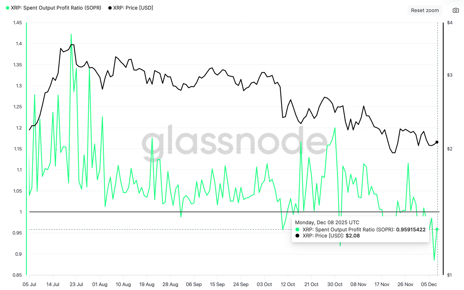- XRP SOPR se restablece hacia la línea media, sugiriendo un posible rebote de precios a pesar del persistente sentimiento de aversión al riesgo.