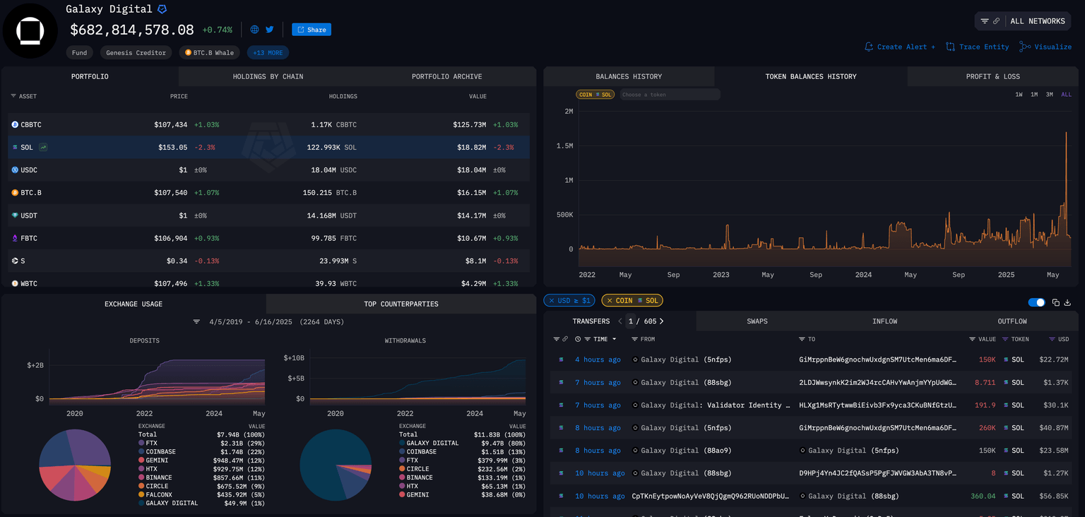 Tenencias de Galaxy Digital. Fuente: Arkham Intelligence