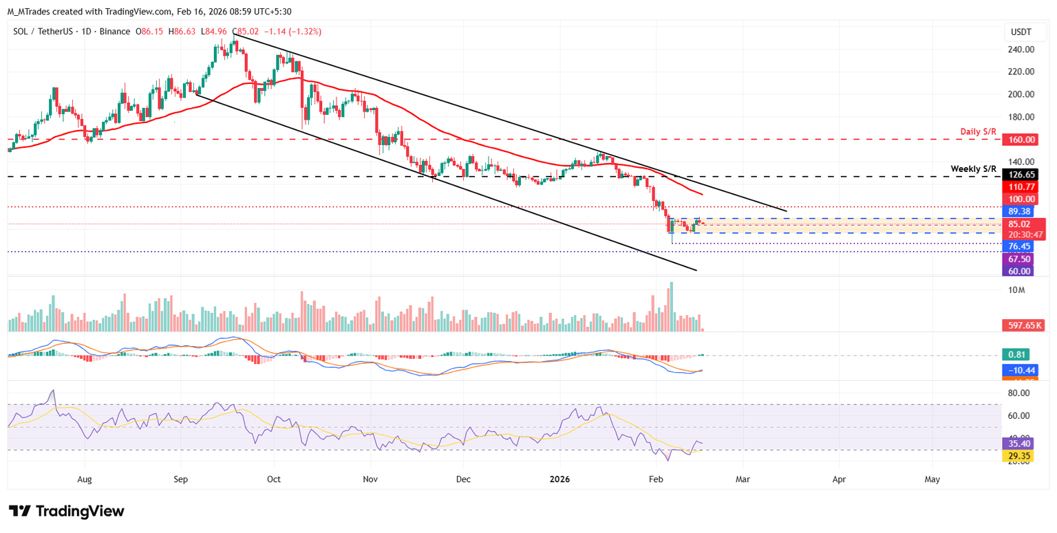 Solana (SOL) se está negociando a 85$ en el momento de escribir el lunes, después de no lograr romper la zona de consolidación superior. Una ruptura de esta zona apoyaría un movimiento al alza. La demanda institucional por SOL regresa a medida que los fondos cotizados en bolsa (ETFs) al contado registraron una entrada de más de 13 millones de dólares la semana pasada. En el lado técnico, los indicadores de impulso en mejora apoyan una posible recuperación en SOL en los próximos días.