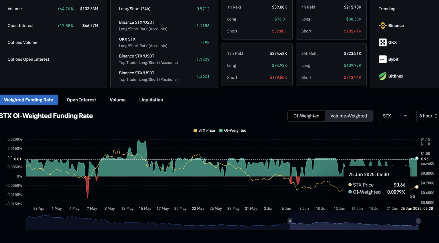 - La perspectiva técnica indica un sesgo alcista a medida que el interés abierto de Stacks salta un 17%.