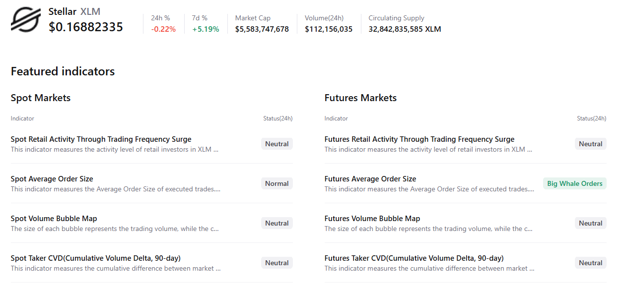 A pesar del sentimiento bajista en el mercado de derivados, los datos de resumen de CryptoQuant de XLM indican condiciones neutrales con signos tempranos de alcismo. La actividad en los mercados al contado y de futuros sigue siendo en gran medida equilibrada, reflejando indecisión entre los operadores. Sin embargo, la presencia de grandes órdenes de ballenas en el mercado de futuros sugiere una perspectiva ligeramente optimista para XLM.