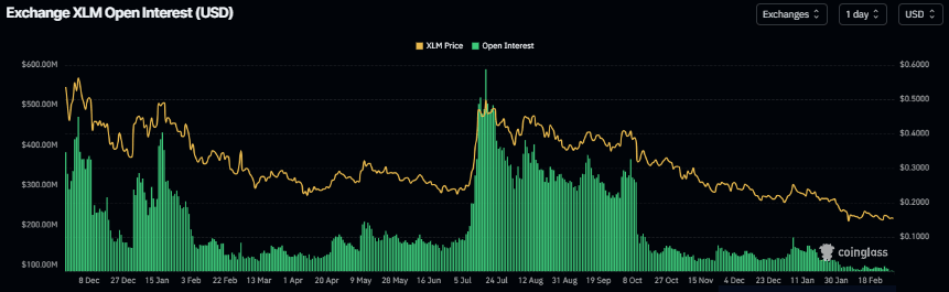 El interés abierto (OI) de futuros de Stellar cae a 84.87 millones de dólares el martes, habiendo estado en constante declive desde principios de enero y alcanzando niveles no vistos desde mediados de noviembre de 2024. Esta caída en el OI refleja una disminución en la participación de los inversores y proyecta una perspectiva bajista.