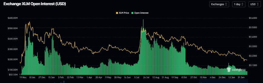 Además, el Interés Abierto (OI) de futuros de XLM cae a 87.07 millones de dólares el miércoles, alcanzando niveles no vistos desde mediados de noviembre de 2024, y ha estado cayendo constantemente desde el máximo del 6 de enero de 166.99 millones de dólares. Esta caída en el OI refleja una disminución en la participación de los inversores y proyecta una perspectiva bajista.