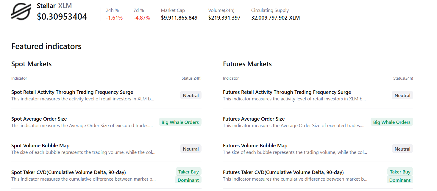 Los datos resumidos de CryptoQuant apoyan la perspectiva alcista, ya que la actividad en el mercado al contado y de futuros de XLM muestra grandes órdenes de ballenas y dominancia de compra, señalando un posible rally por delante.