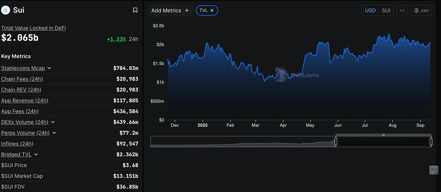 - El TVL DeFi de Sui supera la marca de los 2.000 millones de dólares, reflejando una mayor confianza de los inversores en la recuperación del token de Capa 1.