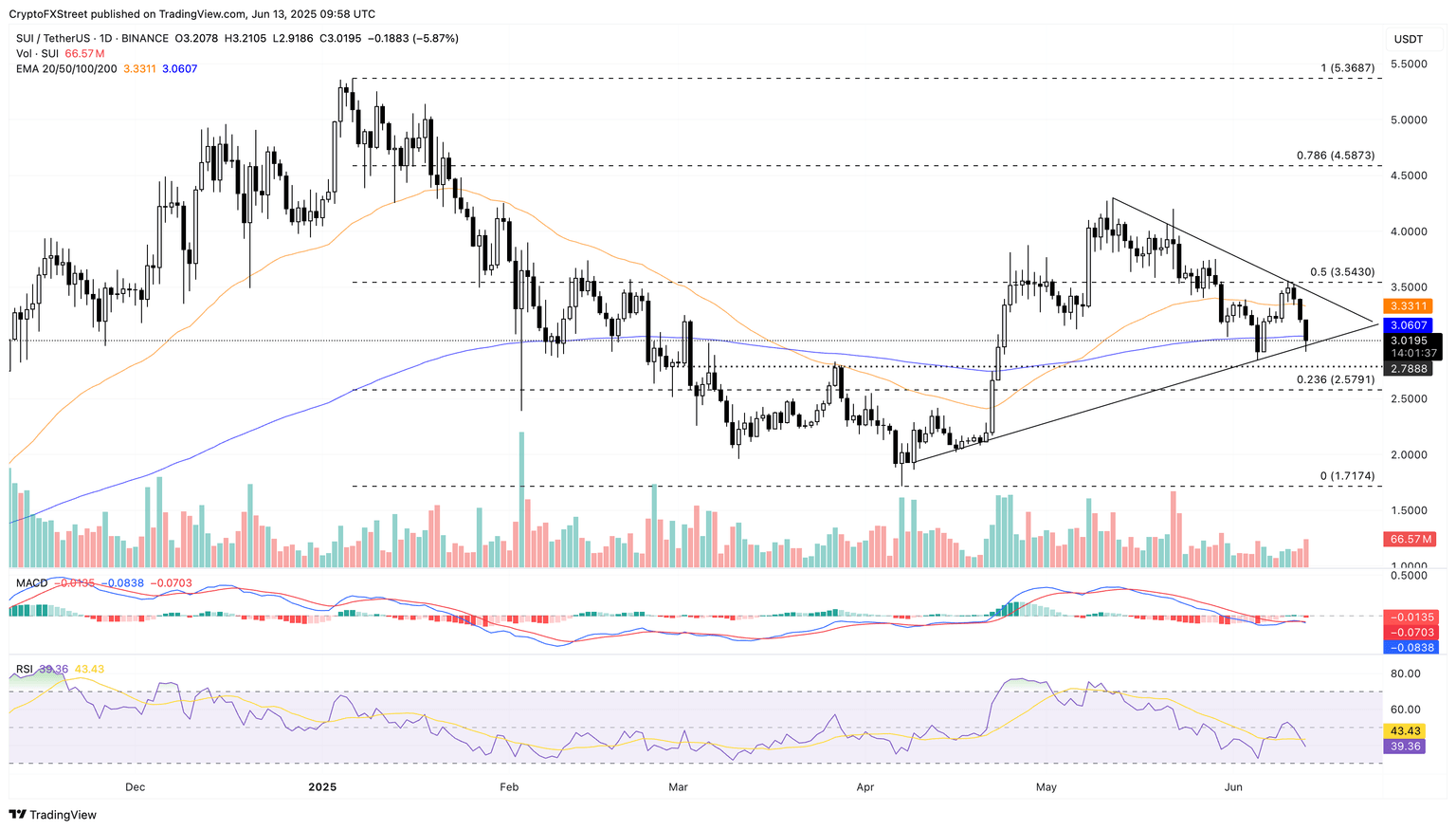 Pronóstico del precio de Sui: Sui apunta a una caída del triángulo por debajo de 3$ a medida que el interés abierto y el TVL se desploman