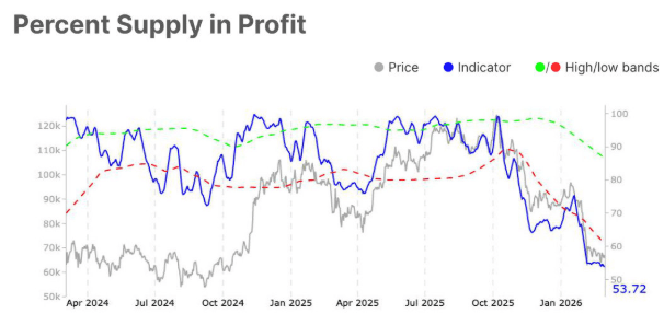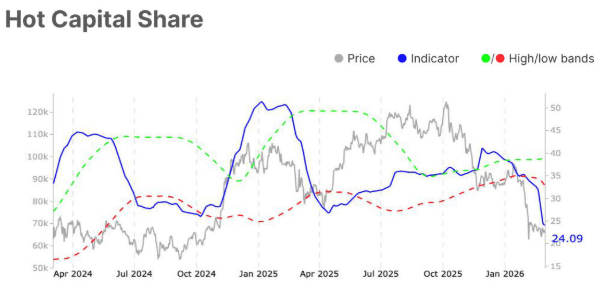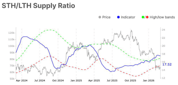Al observar el gráfico de Glassnode a continuación, los métricas de posicionamiento refuerzan una estructura equilibrada pero cautelosa. La relación de suministro de tenedores a corto plazo y a largo plazo se mantiene ligeramente elevada en 17,52 el lunes. Al mismo tiempo, la participación de capital caliente cae a 24,09, y el porcentaje de suministro en ganancias se mantiene cerca del extremo inferior de su rango histórico en 53,72. Colectivamente, estas métricas apuntan a un mercado que transita de la presión de distribución hacia la estabilización, pero sin una confirmación clara de una expansión alcista sostenida.