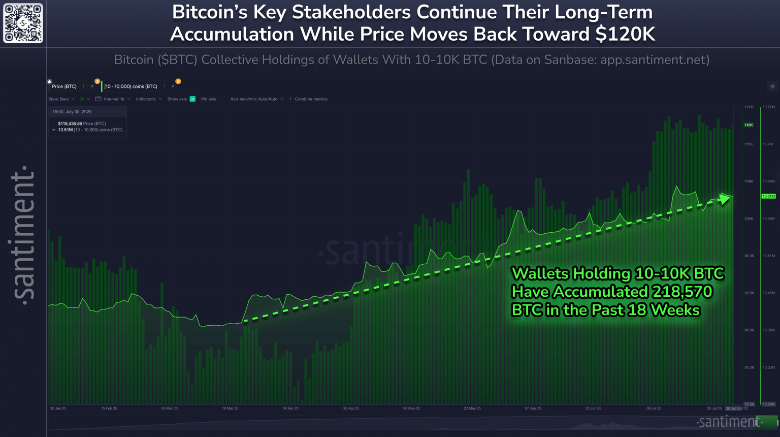 El precio del Bitcoin (BTC) se está negociando por encima de los 118.500$ en el momento de escribir el jueves, continuando una fase de consolidación que ha estado en curso durante los últimos 16 días. A pesar de la falta de una dirección clara en el precio, los datos en cadena muestran algunos signos de optimismo para la criptomoneda más grande, ya que la acumulación de los tenedores de grandes billeteras aumenta y el saldo Over-The-Counter (OTC) ha alcanzado mínimos históricos.