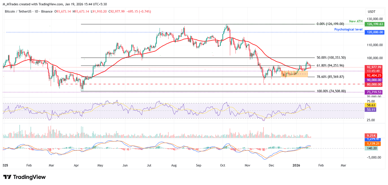- El precio del Bitcoin cae por debajo de los 93.000$ el lunes, volviendo a probar su EMA de 50 días clave.