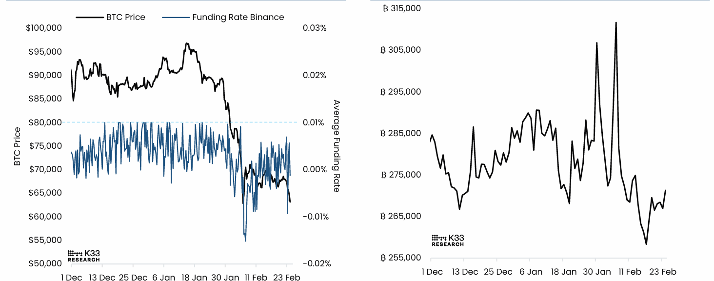 Un informe de K33 Research el martes destacó que los operadores continúan moviéndose de manera defensiva en los mercados perpetuos de BTC.