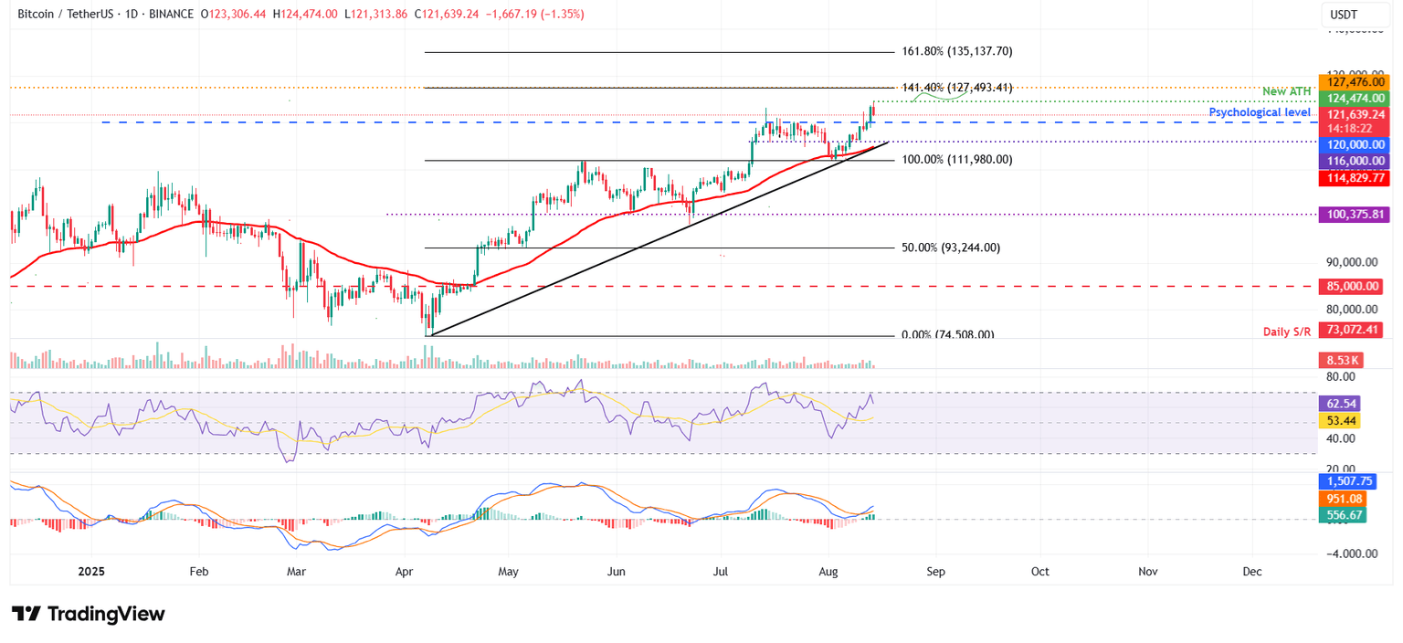 El precio del Bitcoin cerró por encima de su nivel de resistencia psicológica clave en 120.000$ el miércoles y superó el anterior máximo histórico (ATH) de 123.218$ establecido el 14 de julio.