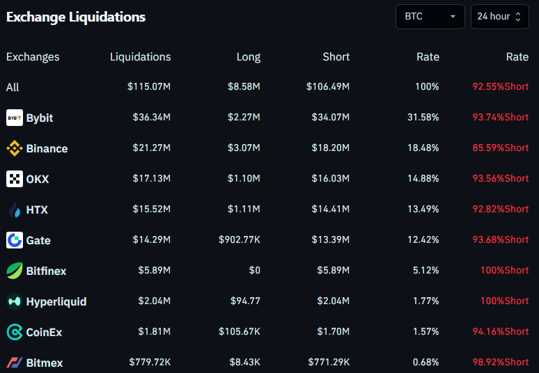 - Los datos de CoinGlass muestran que el fuerte aumento del BTC por encima de 120.000$ eliminó el 92% de las posiciones cortas en las últimas 24 horas.