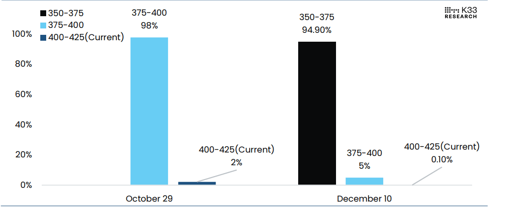 Por ahora, el mercado está valorando un 98% de probabilidad de un recorte de 25 pbs el miércoles y un 94.9% de probabilidad de otro recorte de 25 pbs tras la reunión del FOMC del 10 de diciembre.