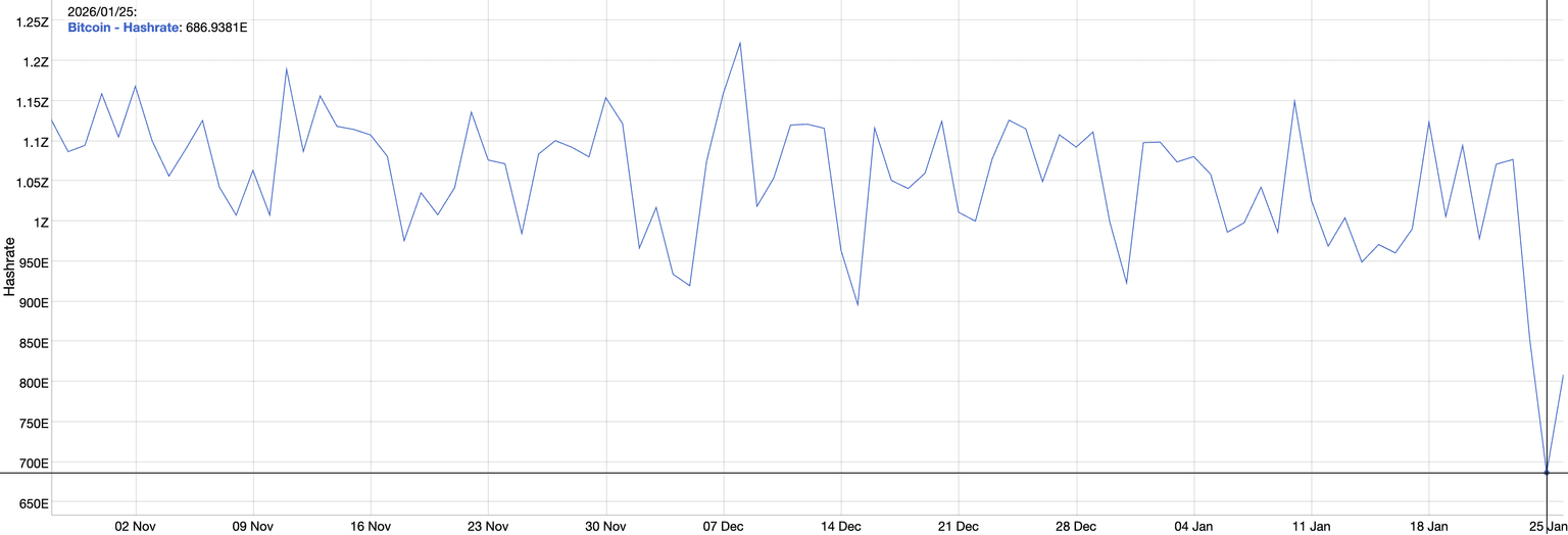 - El hashrate del Bitcoin cayó aproximadamente un 25% debido a que una tormenta invernal afecta a las empresas de minería de BTC en EE.UU.