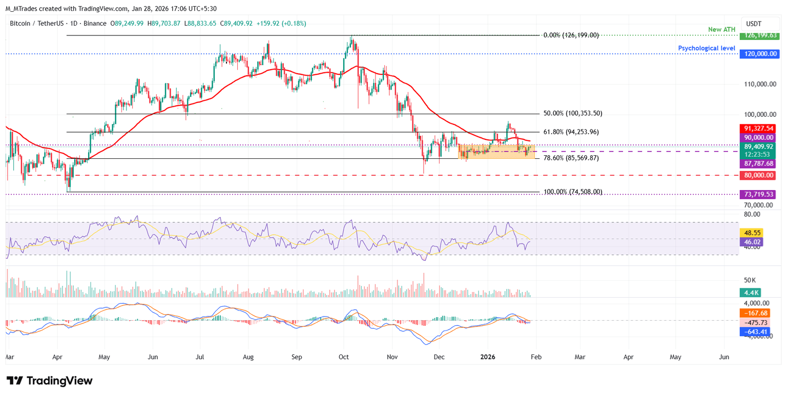 Pronóstico del Precio del Bitcoin: El BTC se estabiliza por debajo de 90.000$ antes de la decisión sobre las tasas de la Fed