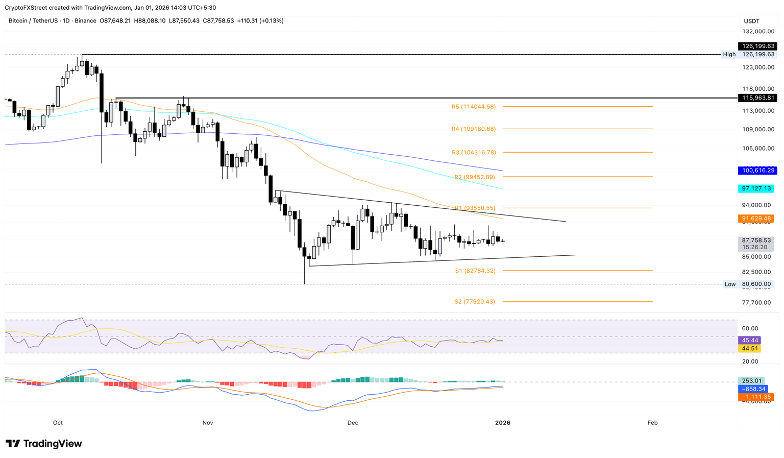 Pronóstico del Precio del Bitcoin: El BTC se mantiene por encima de los 87.000$ en medio de un Año Nuevo averso al riesgo