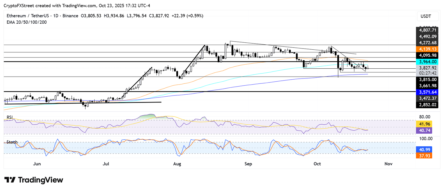 ETH está luchando por mantener el soporte de 3.815$ el jueves mientras enfrenta resistencia cerca de la media móvil exponencial (EMA) de 100 días.