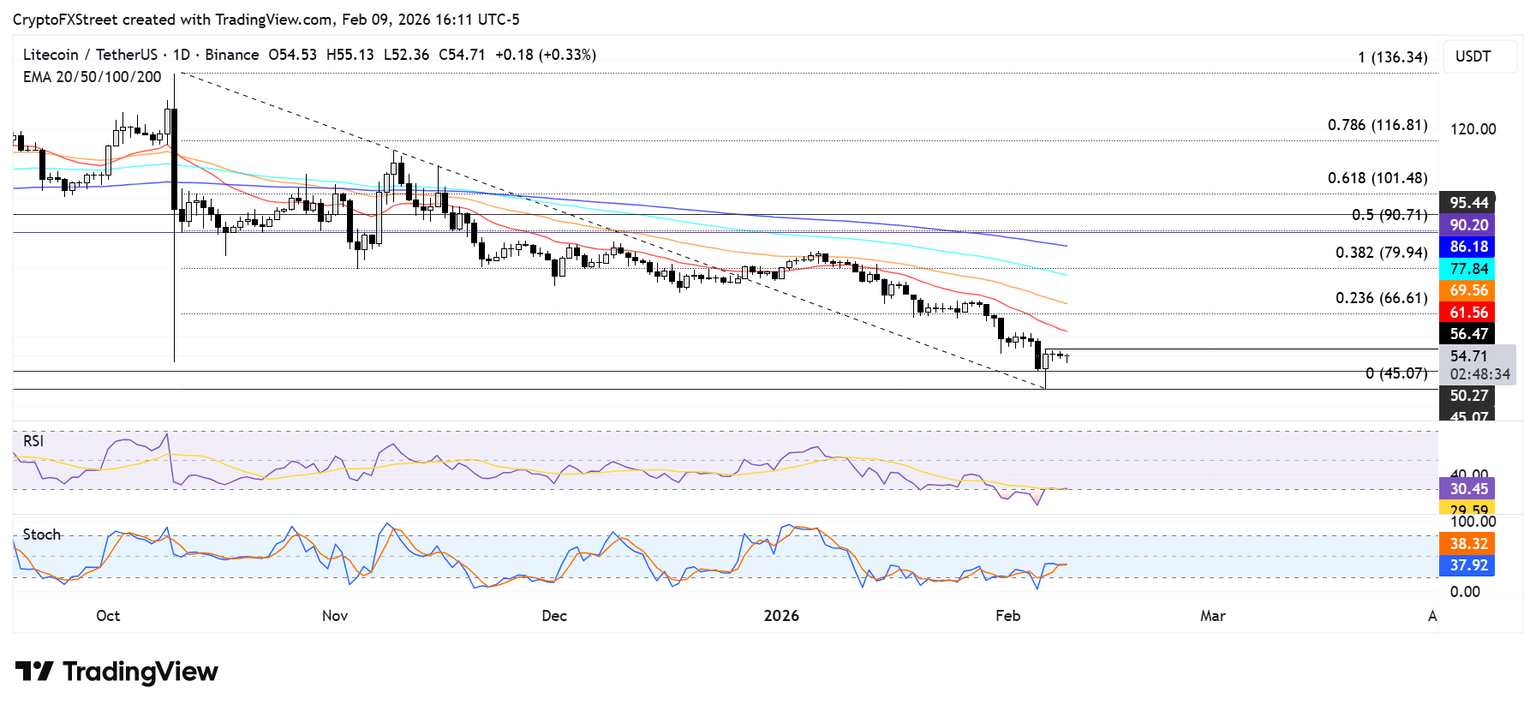 Pronóstico del Precio de Litecoin: LTC ve rechazo en 57$, apunta al soporte de 50$