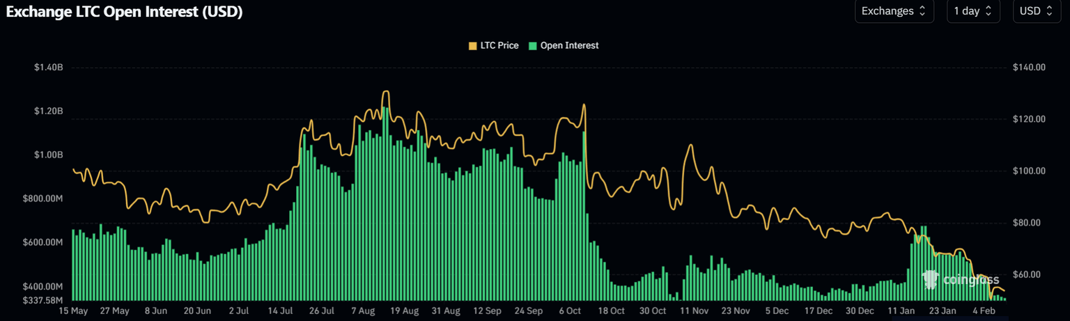 En el lado de los derivados, el interés abierto de Litecoin sigue siendo débil, disminuyendo aún más hacia los 350 millones de dólares mientras que sus tasas de financiación continúan mostrando señales negativas.